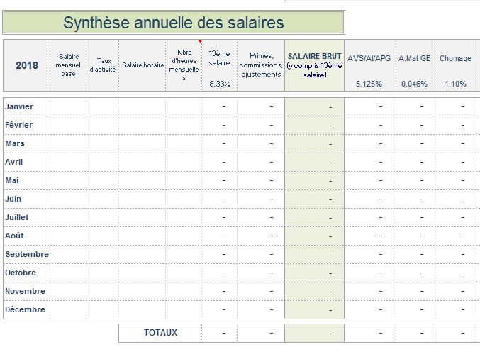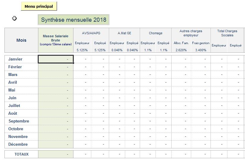 Synthèse annuellle des charges salariales par mois
