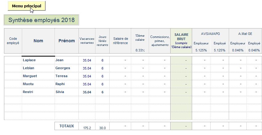 Synthèse mensuelle des charges salariales par employé