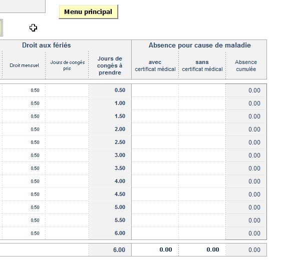 Menu fichier employé