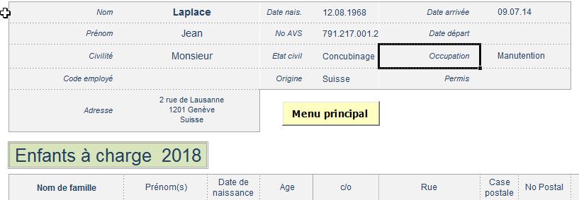 Fiche personnelle employé