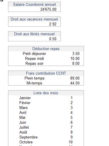 Espace central de paramétrage de toutes les variables annuelles