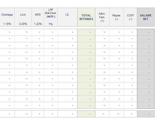 Calcul détaillé de la répartition des charges salariales par type de charge