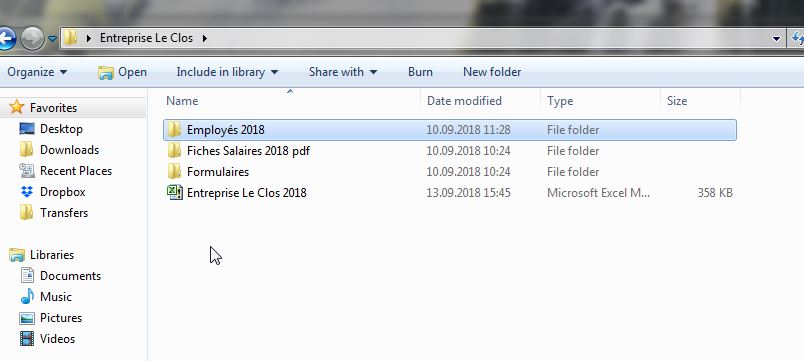 Un dossier contenant fichiers pdf des fiches de salaires menusels